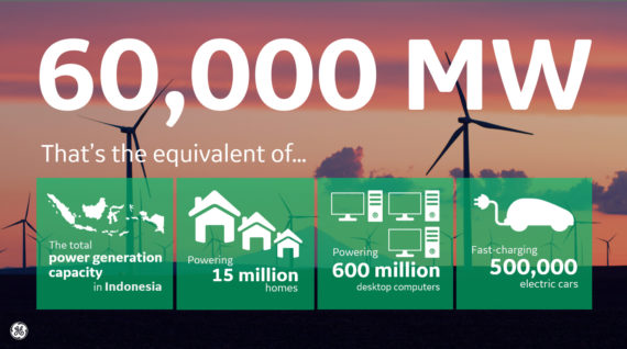 通用電氣可再生能源公司本周二發布公告稱,公司在全球的陸地風電裝機容量已經突破60吉瓦,在全球36個國家安裝了超過3.5萬臺風力渦輪機。
