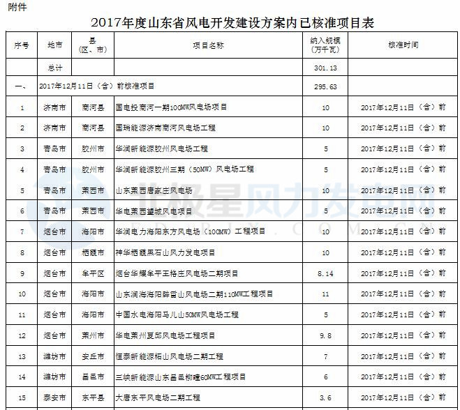 附件:2017年度山東省風(fēng)電開發(fā)建設(shè)方案內(nèi)已核準(zhǔn)項(xiàng)目表