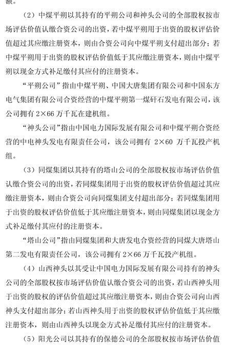 合資公司注冊資本仍為60億元人民幣,其中江蘇國信全部以現(xiàn)3金出資30.6億元人民幣,占注冊資本51%;中煤平朔出資額為9億元人民幣,占注冊資本的15%;同煤集團出資額為9億元人民幣,占注冊資本的15%;山西神頭出資額為5.7億元人民幣,占注冊資本的9.5%;陽光公司出資額為5.7億元人民幣,占注冊資本9.5%。