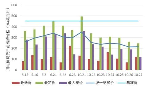 圖2 南方(以廣東起步)試點(diǎn)結(jié)算試運(yùn)行用電側(cè)現(xiàn)貨日前出清價(jià)格