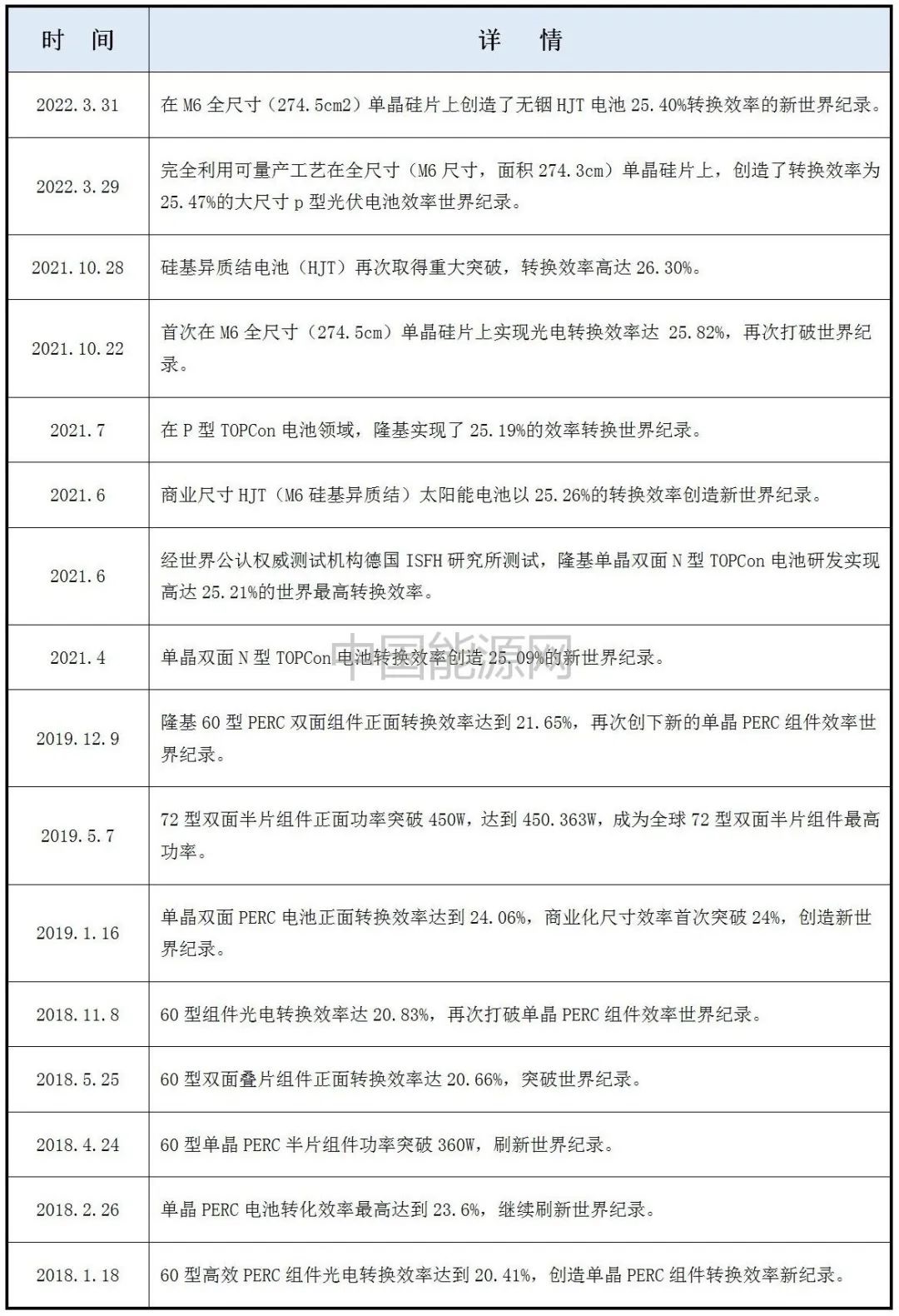 隆基部分光伏效率世界紀錄歷程