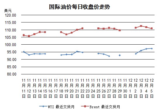 前一交易日美國能源信息署原油庫存統計大幅減少,受此消息刺激,當日紐約WTI期貨價格繼續上漲。美國商務部當日公布的截至上周的一周新申請失業保險人數減少了2.3萬人,為29.8萬人,大幅低于市場預計(路透社調查預測為32.5萬人)。另外,美國第三季度經季節性因素調整后的國內生產總值(GDP)較上年同期增長3.6%,為2012年第一季度以來最快增速;此前公布的初值為增長2.8%。這也提振了美國原油油價。然而市場同時擔心向好的經濟指標會促使美聯儲提前收緊量化寬松政策,因此當日WTI期貨價格漲幅有限。倫敦布倫特期貨價格則繼續延續前日的跌勢。