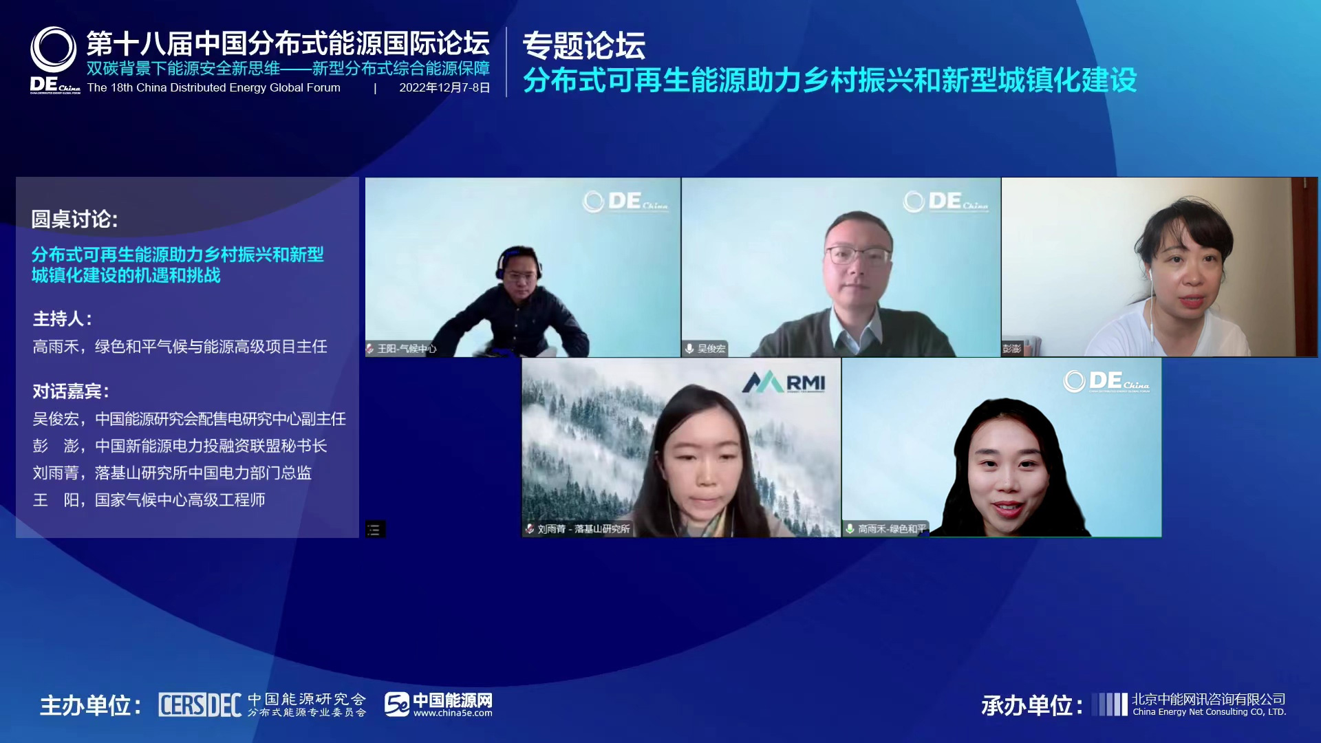 主持人 高雨禾:謝謝吳主任。今天我們非常有幸和電力和可再生能源領域的資深行業專家,大家一起從分布式可再生能源的資源稟賦,開發利用模式,市場機制,投融資方式等方面深度剖析了分布式可再生能源在助力鄉村振興和新型城鎮化建設中面臨的機遇和挑戰,我們同樣堅信隨著電力市場改革不斷的深入推進,城市和農村電力基礎設施的逐步完善,綠色低碳技術的迭代和升級,未來分布式可再生能源一定會擁有更廣闊的市場空間和更創新的應用場景,并實現更高質量的發展。