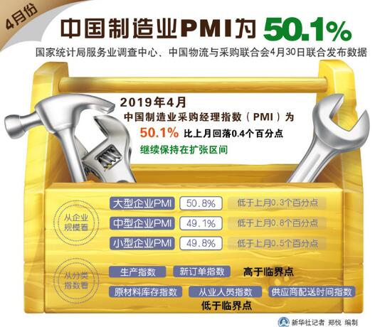 4月份中國制造業(yè)PMI為50.1%國家統(tǒng)計局服務(wù)業(yè)調(diào)查中心、中國物流與采購聯(lián)合會30日聯(lián)合發(fā)布數(shù)據(jù),4月份,中國制造業(yè)采購經(jīng)理指數(shù)(PMI)為50.1%,比上月回落0.4個百分點,繼續(xù)保持在擴張區(qū)間。 [詳細(xì)]